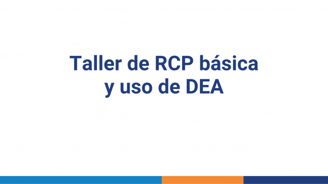 Destinatarios: bomberos, guardavidas, profesores de educación física, brigadas de empresas y público general. Programa Reanimación Cardiopulmonar básica (RCP) en adulto y niño. Opcional lactante. Desobstrucción de la vía aérea en adulto, niño y lactante Uso del desfibrilador externo automático (DEA) Duración: 3 horas Modalidad: Presencial, virtual o híbrida.